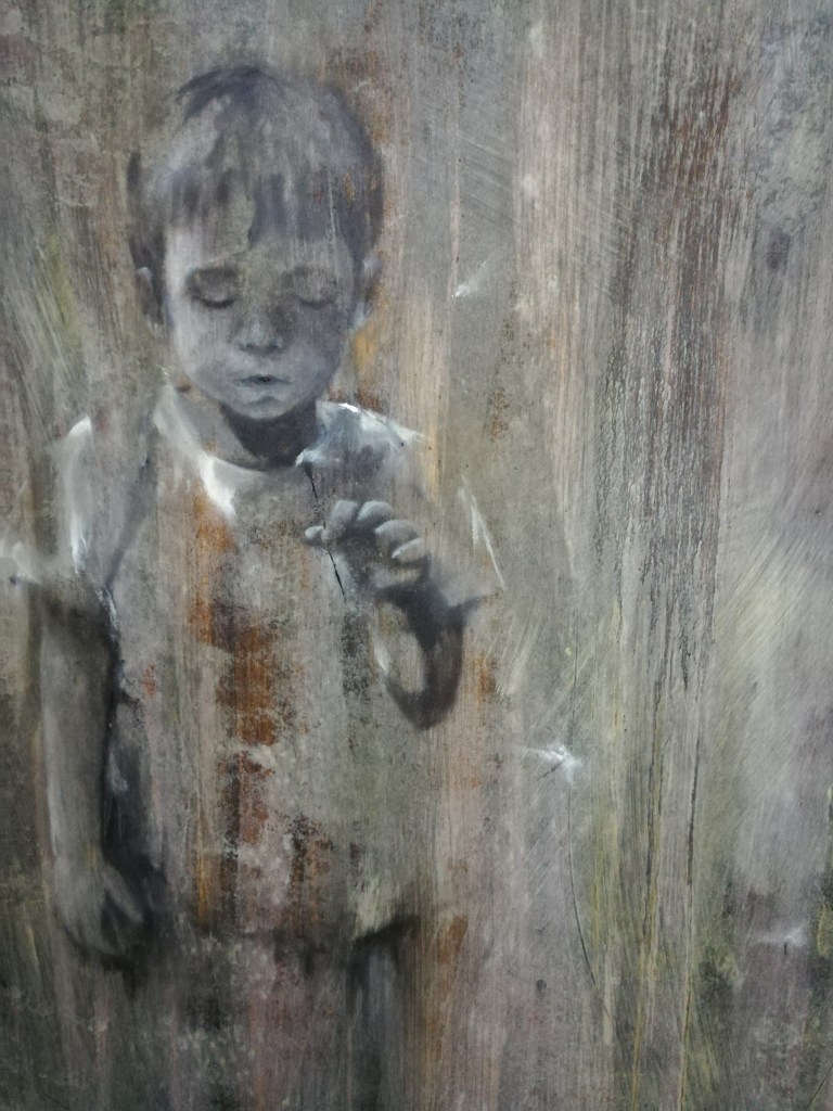 The boy of the empty wishes. Mixed technique on wood, 130x97x3 cm.