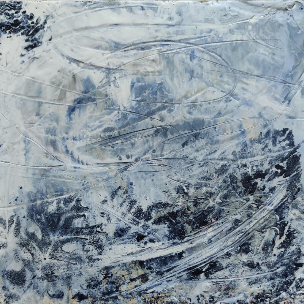 Wind corner (2023), wax painting on wood, 30×30 cm